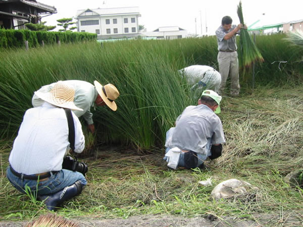 収穫されたイグサを畳表に使えるように、泥染めという大切な工程が入りますが、着色は一切しておりません。